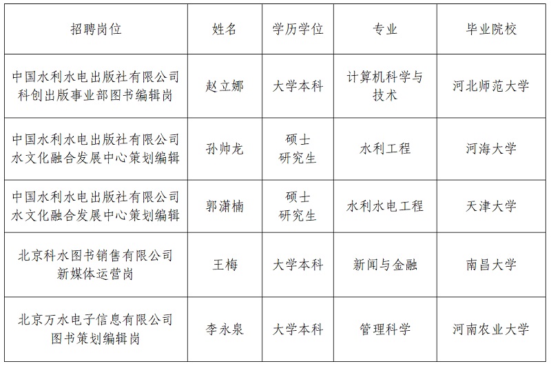 根據(jù)水利部公開(kāi)招聘工作有關(guān)規(guī)定及我集團(tuán)2025年度社會(huì)公開(kāi)招聘工作方案,現(xiàn)將擬聘用工作人員予以公示。公示期間如有問(wèn)題,請(qǐng)向我集團(tuán)反映。 公示時(shí)間:2026年1月
