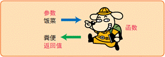 講解函數(shù)的參數(shù)和返回值時(shí),會用人吃進(jìn)食物而排出糞便來比喻。